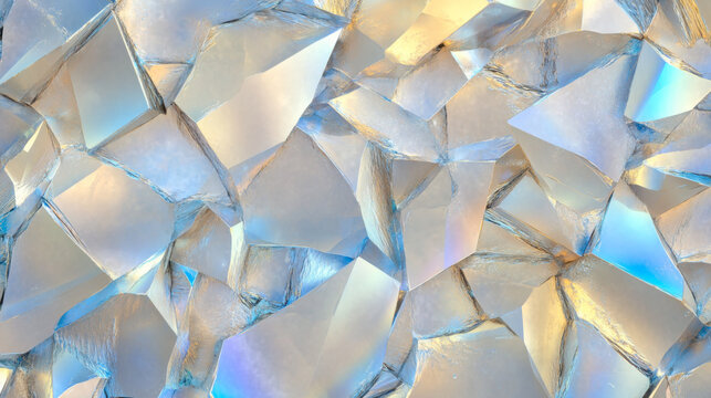 Abstract iridescent crystal shards form a shimmering, multifaceted background texture,  gradient,  color
