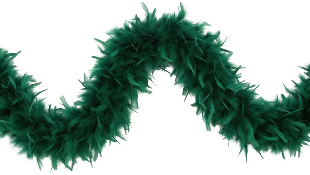 Isolated green feather boa for holiday decoration, luxurious, elegant, festive party accessory