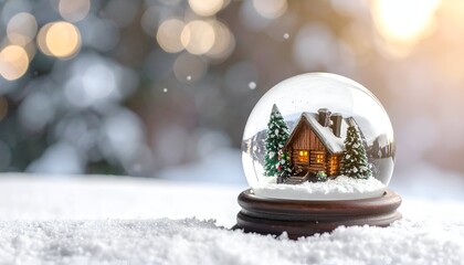 Winter Wonderland: A charming miniature house nestled amidst a snowy landscape, adorned with festive Christmas trees and shimmering golden ornaments, creating a warm, inviting scene of holiday cheer.