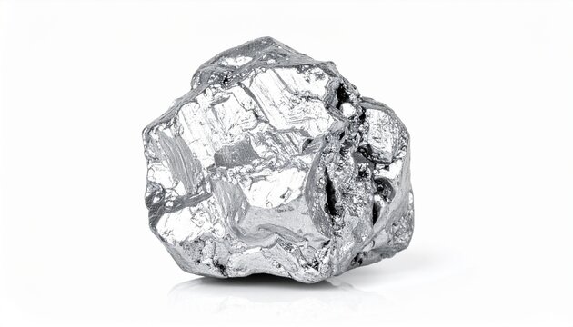 Metallic rock shows shiny surface and irregular shape in neutral light on plain background