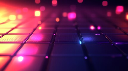 Futuristic digital grid with glowing squares and circuit lines