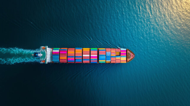 Cargo ship navigating open ocean with vibrant containers