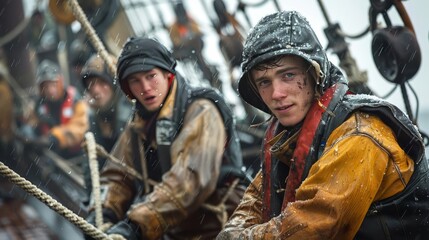 A group of seafarers working together on a ship