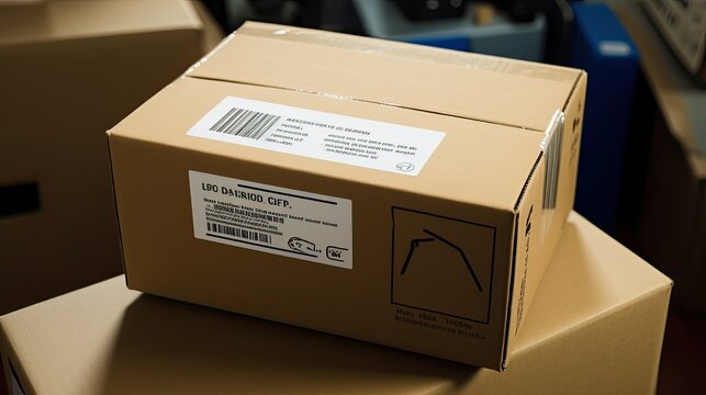 Tracking number label being applied to cardboard box logistics dashboard customer notification shipping delivery barcode parcel e commerce and order fulfillment concept