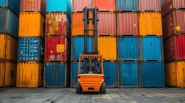 Colorful shipping containers stacked together, showcasing vibrant mix of red, teal, and orange hues. industrial design highlights structure and functionality of cargo transport