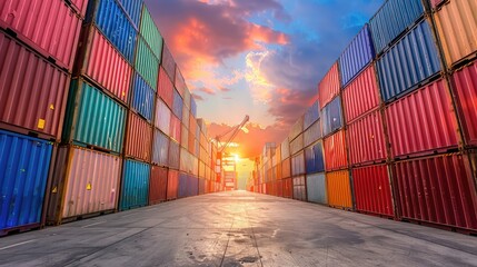 Vibrant Shipping Containers at Sunset