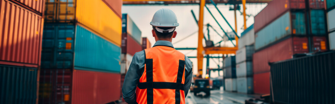 Port manager overseeing container shipment operations at a busy industrial shipping terminal.