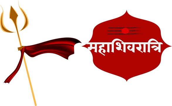 Maha Shivrati Concept, Template, Banner, Logo Design, Icon, Poster, Unit, Label, Web, Symbol, Sign, Mnemonic with celebration in background. Shiv ling, Trishul and Damaru - Vector, Illustration