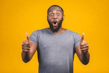 young man expressing surprise and shock emotion with his mouth open and wide open eyes. isolated on color background