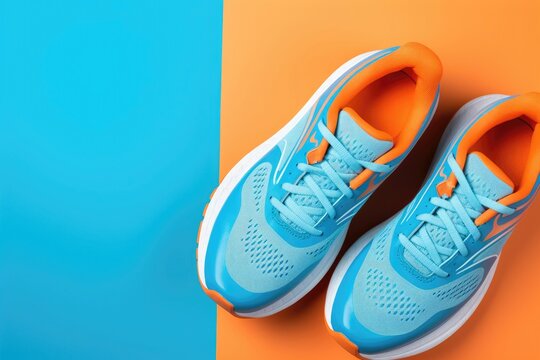 Running shoes on bright color background.