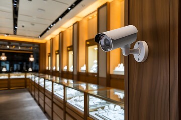 High Definition Security Camera Surveillance in Jewelry Store With Display Cases.