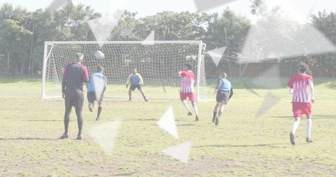 Dynamic soccer match with players attempting goal