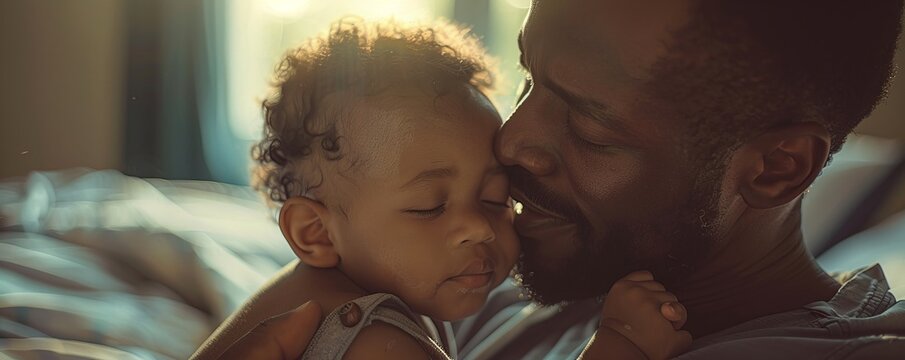 Father hugging son in home entryway showing warm welcome and genuine family affection