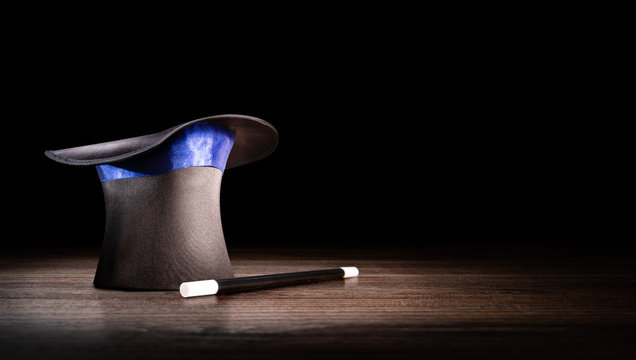 high contrast image of a magician hat on a wooden background