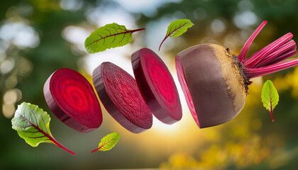 Photograph of beetroot cut in the air
