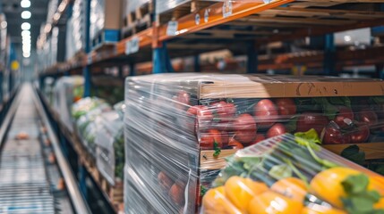 Pallet of wrapped food products in warehouse