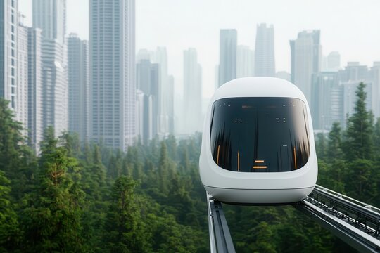 A futuristic city with electric autonomous shuttles transporting people through eco-friendly neighborhoods