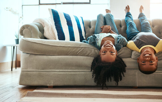Joyful siblings playing together at home