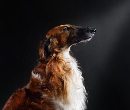 Red color russian hunting sighthounds dog