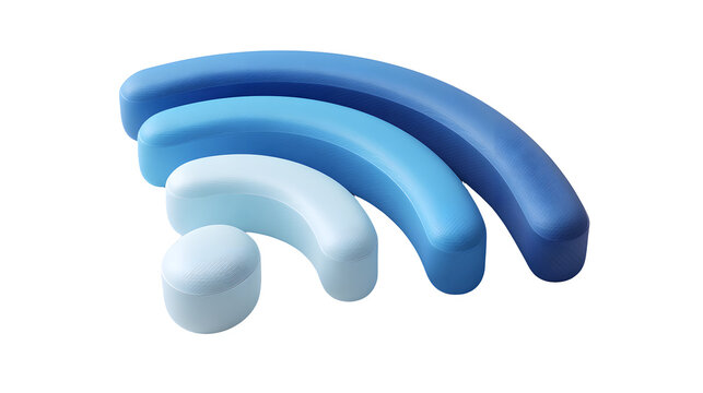 Stylized wifi signal symbol with three curved floating bars and a sphere on a white background