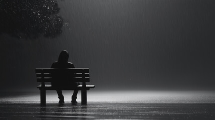 Silhouette in the Spotlight: A single figure stands illuminated, a radiant silhouette against the darkness. The image evokes feelings of mystery, isolation, and introspection.