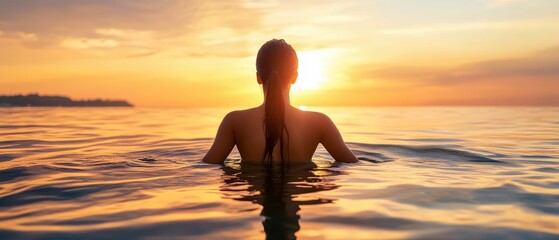silhouette of beautiful thoughtful girl sitting on the sand and enjoying the sunset, the figure of young woman on the beach, female meditate on nature