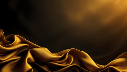 Dark gold background, golden fabric wave, silky yellow drapery backdrop design. Gold silk satin fabric abstract background. Fabric texture resembling velvet with a rich  soft surface