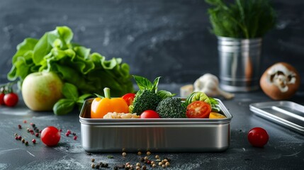 A stylish silver container sits elegantly amidst fresh mint and tea leaves, capturing the essence of herbal wellness and inviting serenity into the atmosphere.