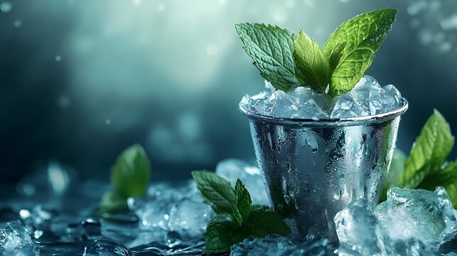 Fresh whisky cocktail served in a silver cup known as Mint Julep