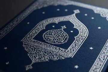 invitation card with elegant silver embossed border on deep navy background