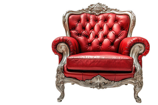 A luxurious red leather armchair with silver ornate frame Isolated on transparent background, PNG