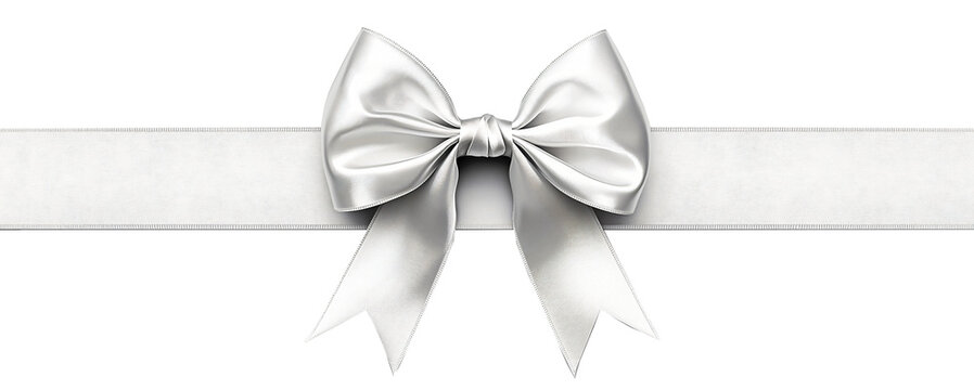 Silver gift box decorated with golden ribbon by woman hand, Present packing for giving in special day, Top view