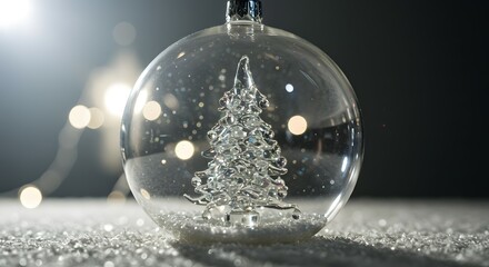 Enchanted Christmas Ornament Sparkling Glass Ball with Miniature Silver Tree, Festive Holiday Decoration