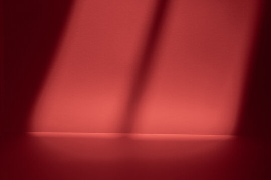 Studio Red background in abstract style. Christmas red abstract gradient background with light shafts and soft shadow