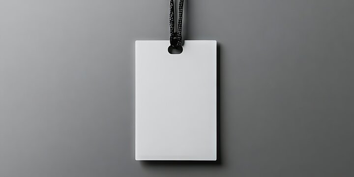 Blank White Name Tag with Lanyard on Gray Background, Minimalist Corporate Identity Mockup