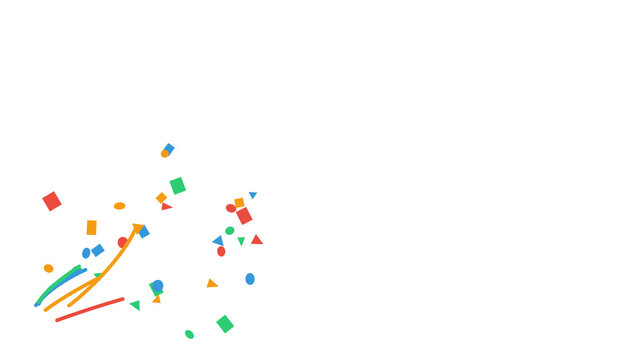 Colorful geometric shapes confetti explosion. Abstract animation of flying squares, circles, and triangles for party, celebration, or event visuals. Fun graphic elements with a transparent background.