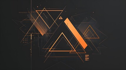 Dark geometric abstract. A central open triangle intersected by a bar, surrounded by layered perforated triangles on a black surface