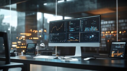 Business collaboration analyzing data with digital charts in modern office