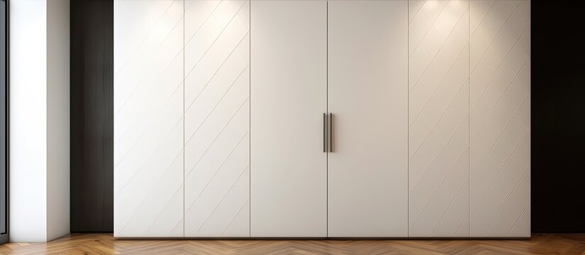 A close up of a white closet standing on a wooden floor, showcasing a simplistic and elegant design