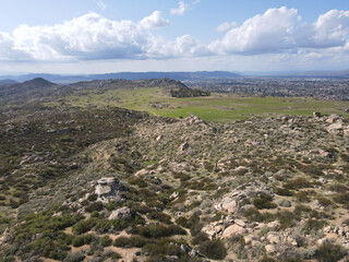 Aerial view of Simpson park wilderness valley in Santa Rosa Hills. Hemet, California. USA