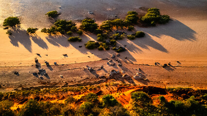 Simpson Beach Aerial – Minimalist Sunrise with Sand Layers and Bushes, Broome WA