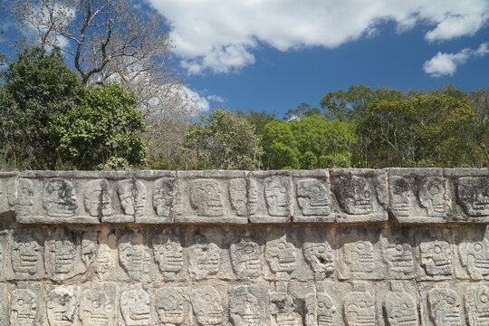 Scull relief on a stone wall, Chichen Itza, Yucatan, Mexico