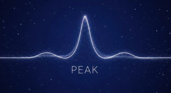PEAK Fine-Line Typography with Apex Sine Wave Dissolving into Stardust – Scientific Serenity, Long-Exposure Light Painting Photography