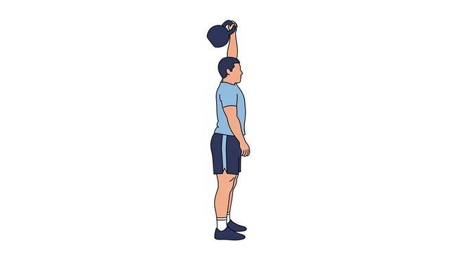 Man performing a single arm kettlebell overhead press exercise illustration.