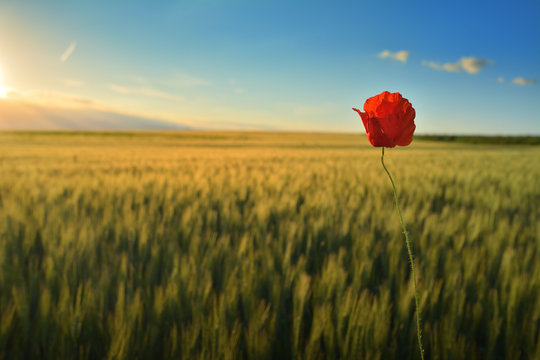 single poppy flower symbolizing memorial day isolated on pristine white background