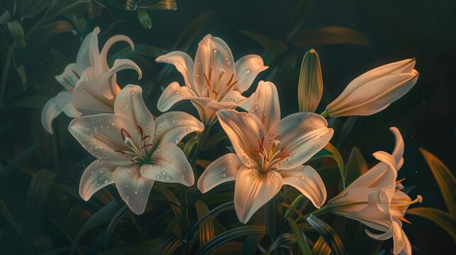 A closeup of a white lily in full bloom, showcasing its delicate petals and natural beauty against a studio background