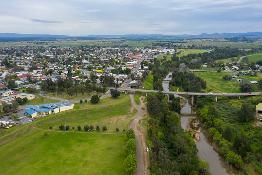 Aerial view of the township of Singleton in regional New South Wales in Australia