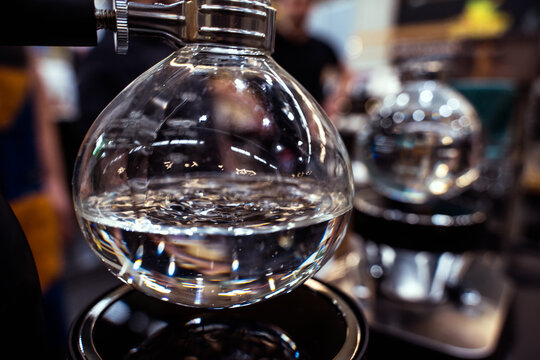 Siphon Coffee Experience Brewing Glass. Vacuum pot background.