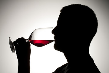 silhouette of a man sipping wine