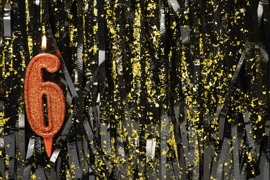 Vibrant, colorful number six design with multicolored stripes and a glossy, dynamic effect on a black background